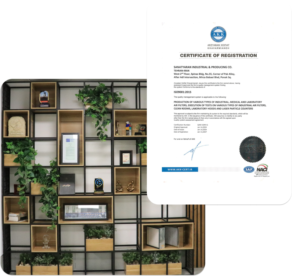 و نیز عضویت در انجمن بین المللی فیلتراسیون هوا (NAFA)، توانسته استانداردهای کیفی خود را در سطح ایران به اثبات برساند.