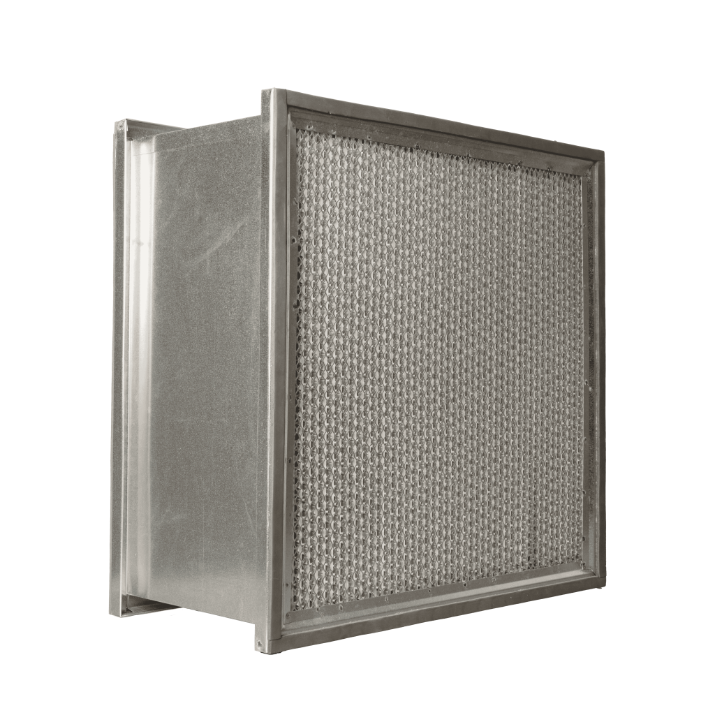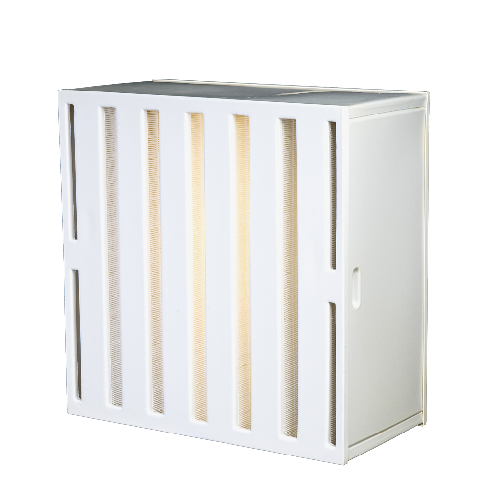 فیلتر وی بنک (V-Bank) با طراحی چندماژوله V شکل و مدیای میکروفایبرگلاس مینی پلیتد، سطح فیلتراسیون بالایی فراهم می‌کنند. این ساختار موجب عبور حجم بیشتری از هوا با افت فشار کمتر شده و در نتیجه طول عمر بالاتر و صرفه‌جویی در مصرف انرژی را به همراه دارد. قاب ABS مقاوم، همراه با هوابندی کامل توسط ژل یا چسب‌های دوجزئی، عملکردی پایدار حتی در شرایط عملیاتی سخت تضمین می‌کند. فیلترهای وی بنک با راندمان حداقل 99.95% در جذب ذرات (MPPS)، انتخابی ایده‌آل برای کلین‌روم‌ها، اتاق‌های عمل، صنایع دارویی، صنایع الکترونیک و میکروالکترونیک، مراکز هسته‌ای و سیستم‌های با جریان هوای متلاطم هستند.